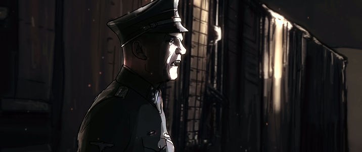 Colonel Eric Schneider, the camp commandant, embodies a disciplined authority as an SS officer, balancing the brutal regime with a deep attachment to music. Unlike the typical executioner, his power in calm control and belief in order.